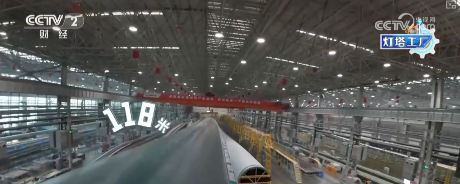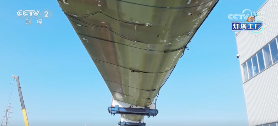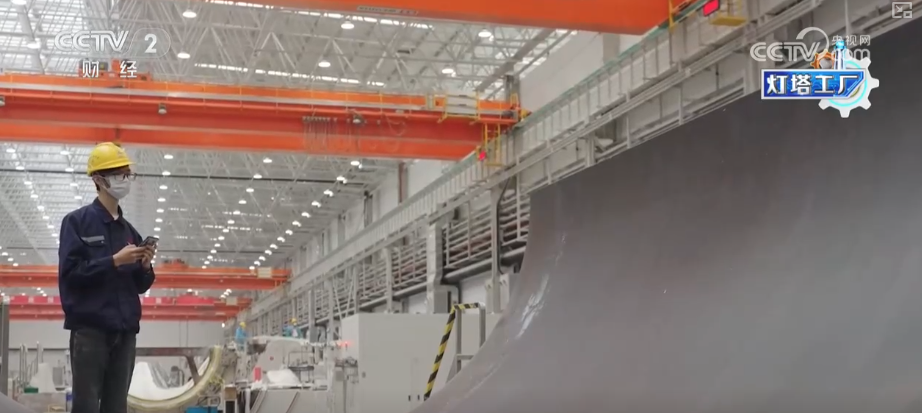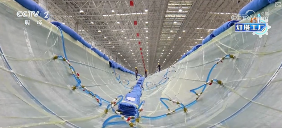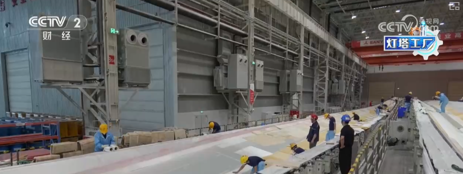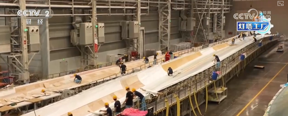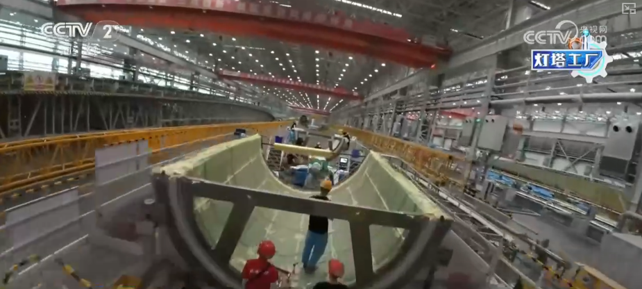 这里是湖南韶山这个的叶片工场,这个大师伙就是风机叶片。目前,这家“灯塔工场”最长能够出产118米的叶片。像如许的一只百米级叶片,出产时间也从本来的平均40多个小时,