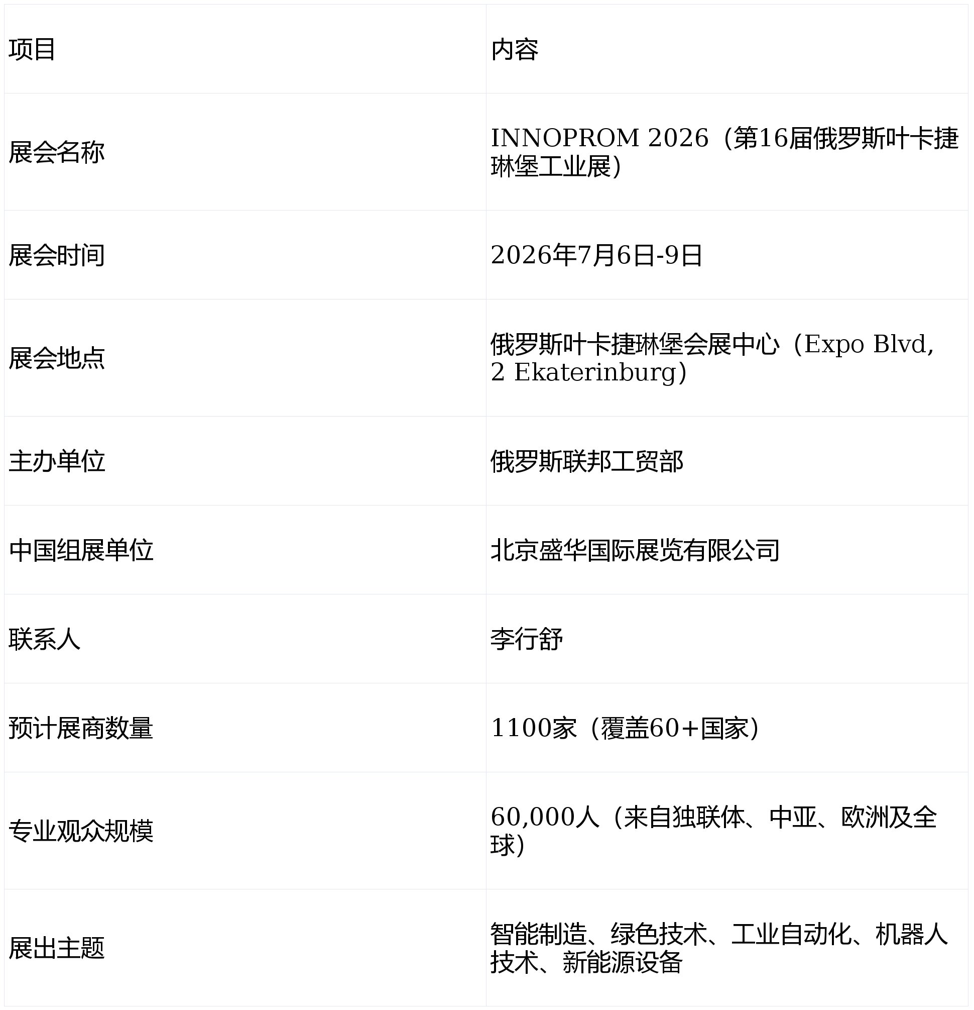 当全球工业款式加快沉构,一场承载手艺取财产合做的嘉会即将启幕!2026年7月6日至9日,第16届俄罗斯叶卡捷琳堡工业展(INNOPROM 2026)将正在叶卡捷琳堡会展核心昌大举行。做为俄罗斯联邦工贸部曲属从办的独一国度级工业博览会,INNOPROM以“智联欧亚·绿动将来”为从题,汇聚全球工业创生力军,打制辐射独联体、中亚及全球市场的手艺买卖取财产合做平台。